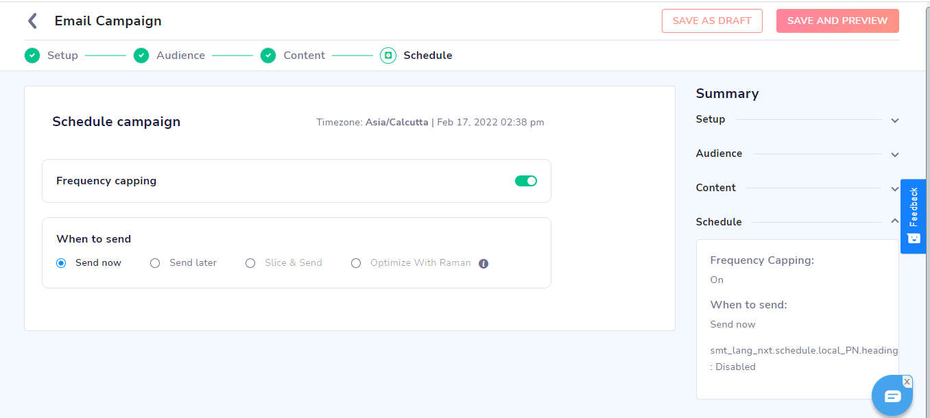 We would like to update that when frequency capping is enabled slice and sent feature wont work, please disable frequency capping then slice and send feature will work.