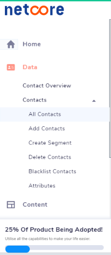 2) Click on “Data --> Contacts -->Blacklist Contacts