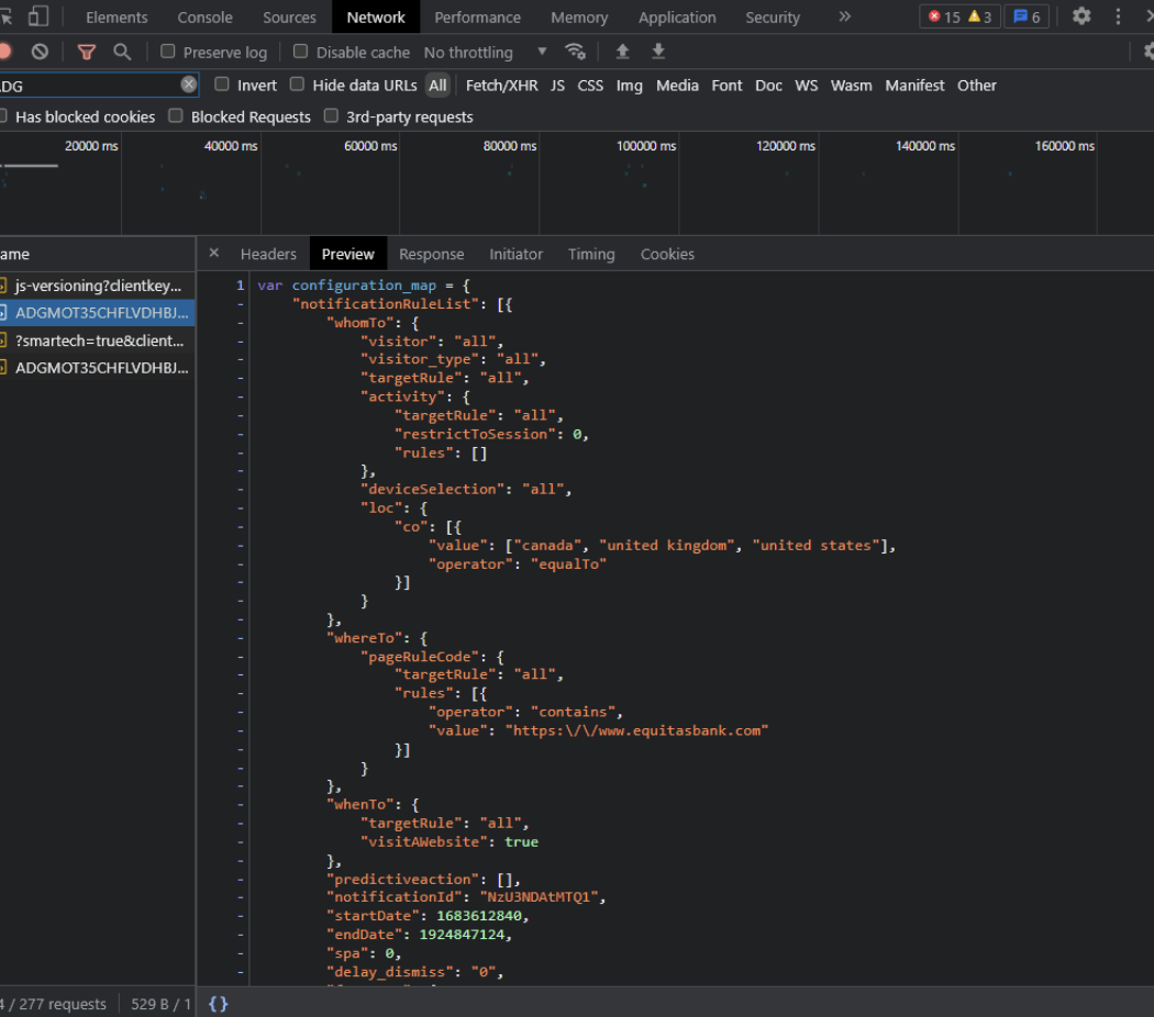 Check Network Tab for ADG: