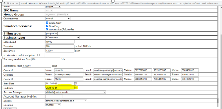 - Enter the new end date as suggested by the account manager in the "Validity Till" field.