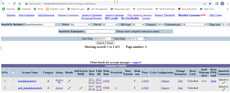 - Click on "Manage Customer" and enter the instance in the "Search by Instance" field, then press enter.