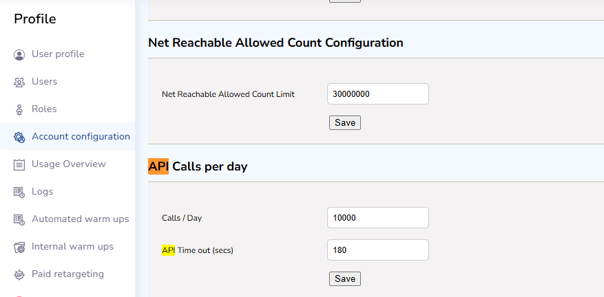 - After modifying the API call limit, click on "Save" to apply the changes.
