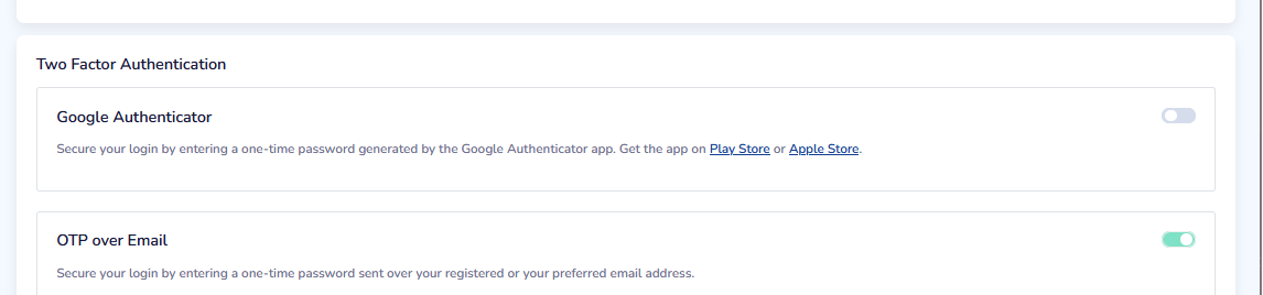 Once you click on ‘Update Two-Factor Authentication’, an OTP will be sent to your registered email address. Enter the OTP to proceed.