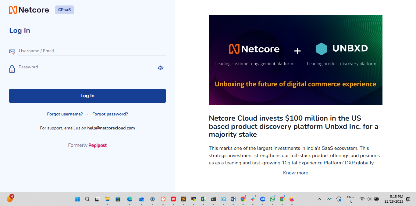 Go to the CPaaS login page: https://cpaas.netcorecloud.com/index.php/login/index