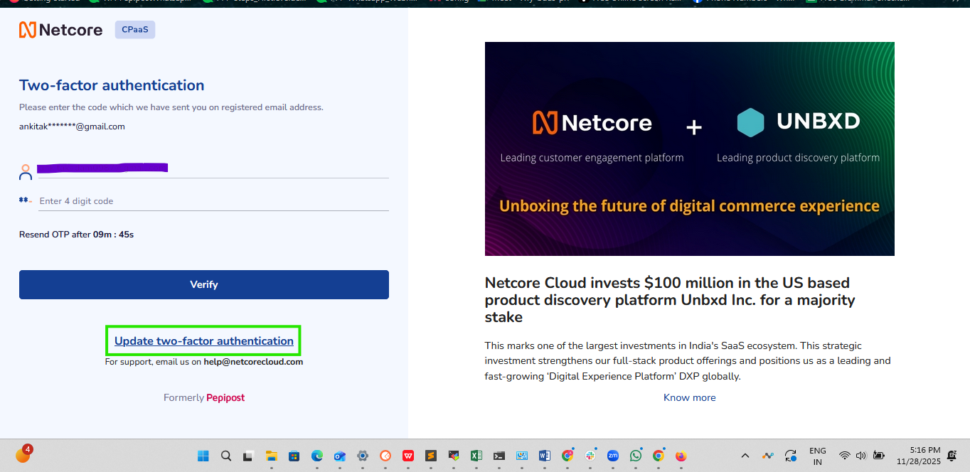 1. If you can still login to your Netcore CPaaS panel, you can go to Profile=> 2FA => select an appropriate 2FA method.